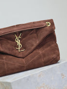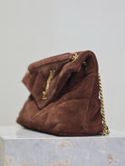 LOULOU PUFFER SMALL 29 CHOCOLATE SUEDE GHW