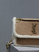 NIKI MEDIUM 28 IN CAMEL SUEDE AND WHITE SHEARLING