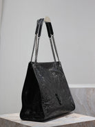NIKI SHOPPING BAG 39 IN BLACK CRUMPLED CALFSKIN SILVER HARDWARE