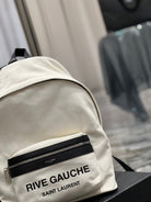 RIVE GAUCHE BACKPACK 35 IN WHITE CANVAS MIX BLACK CALFSKIN
