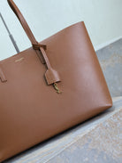 SHOPPING TOTE BAG 38 IN RED BROWN CALFSKIN