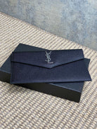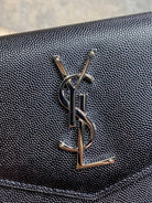 YSL 22s Uptown Pouch Clutch Bag Black Cowhide Sliver HW