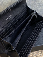 YSL Cassandre Envelope Flap Wallet Full Black Caviar Cowhide