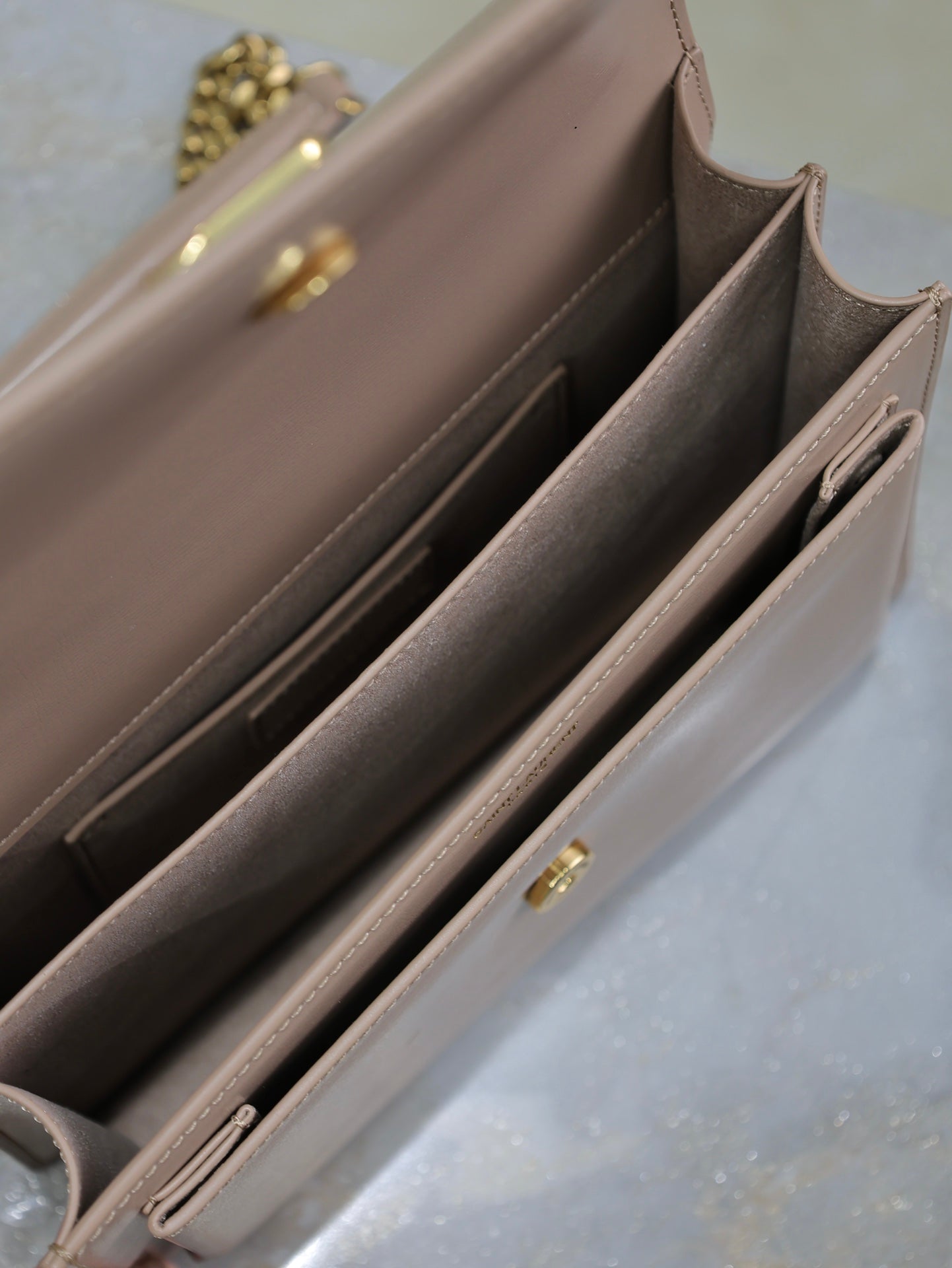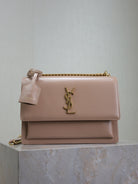 YSL Medium Sunset Shoulder Bag 22cm Beige-Brown Cowhide GHW