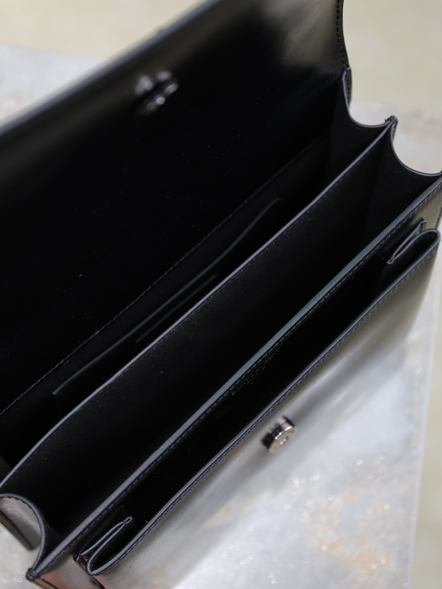 YSL Medium Sunset Shoulder Bag 22cm Black Cowhide Black HW