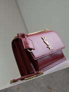 YSL Medium Sunset Shoulder Bag 22cm Burgundy Cowhide GHW