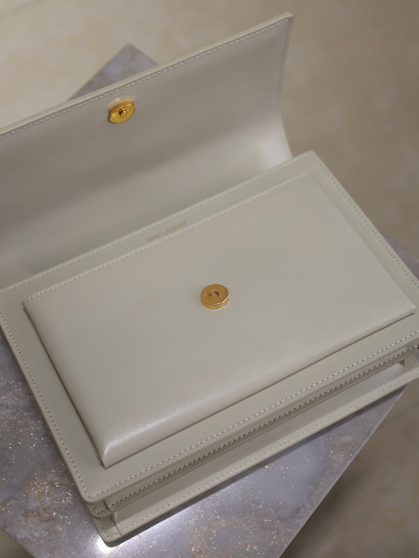 YSL Medium Sunset Shoulder Bag 22cm White Cowhide