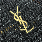 YSL OXALIS 37CM BLACK RAFFIA TAN CALFSKIN