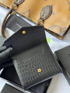 YSL Tri-fold Wallet 12cm Black Gold Alligator leather