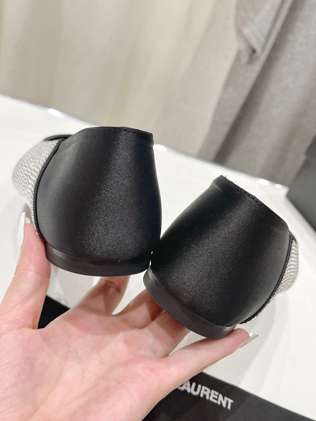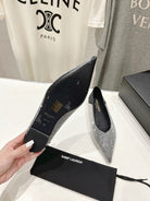 SL NOUR LEOPARD POINT TOE BALLET BLACK CRYSTAL SATIN