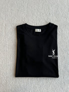 YSL 25 Letter Logo Short Sleeves T-shirt Black and White Cotton