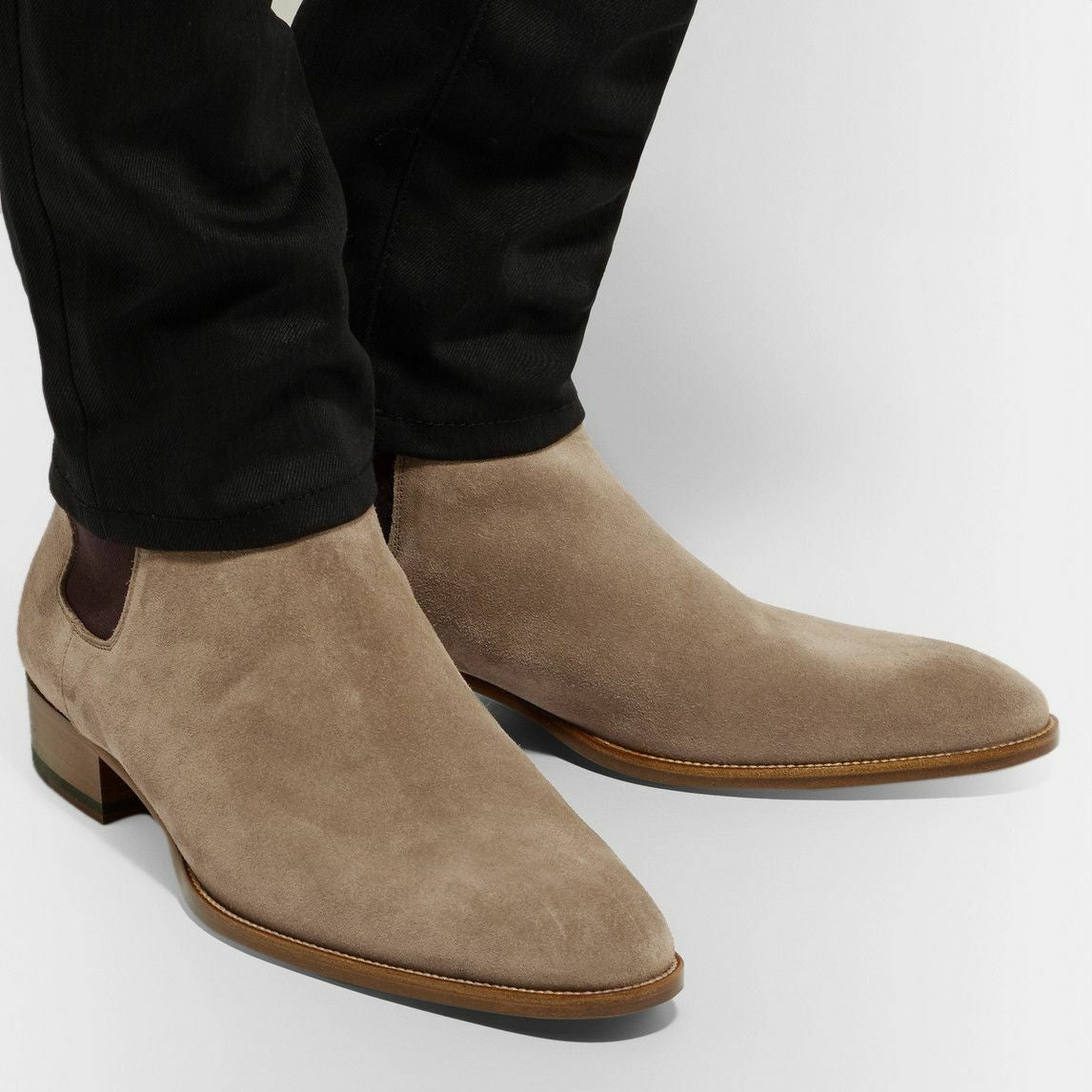 Saint Laurent Wyatt Suede Chelsea Boots Beige Brown