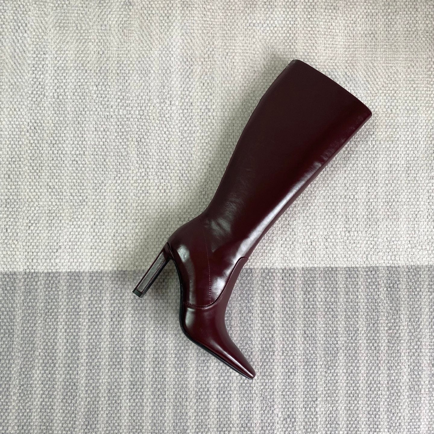 YSL Jill Boots 75mm Dark Red Smooth Calfskin 429098