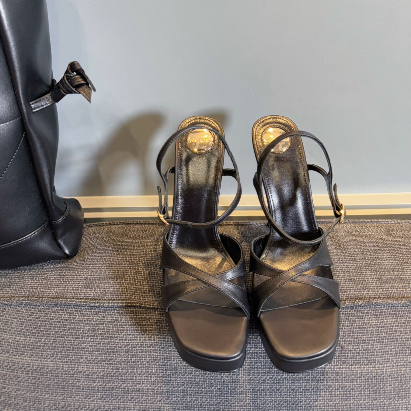 SL CASSANDRA MID-HEEL SANDAL BLACK CALFSKIN
