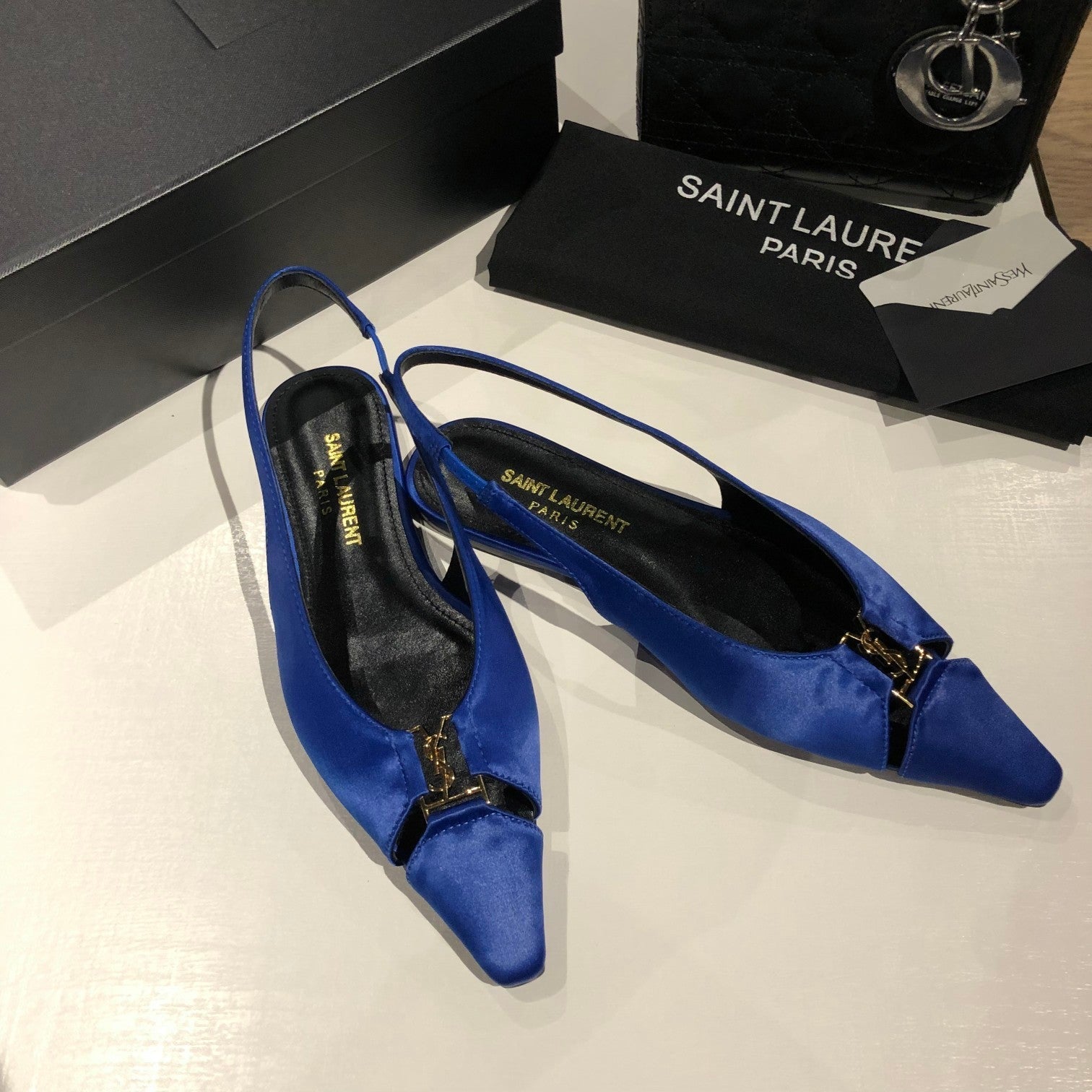 BABYLONE SLINGBACK FLAT IN SAPPHIRE BLUE SILK