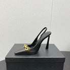 GOLD CHAIN ATTACHED HIGH SLINGBACK IN BLACK SMOOTH LAMBSKIN