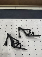 HIGH CRYSTAL STRAP SANDALS IN BLACK SILK