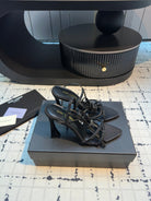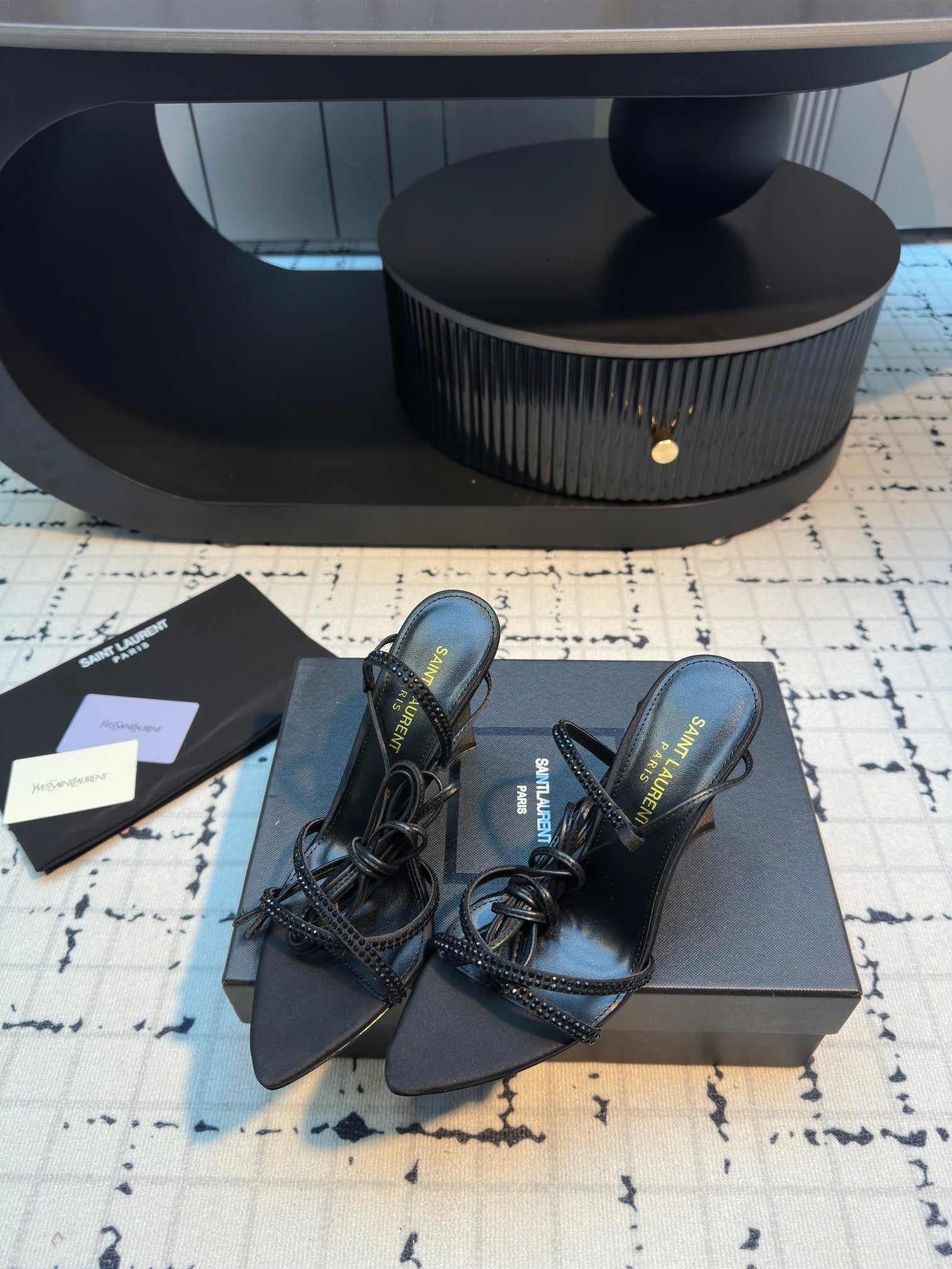 HIGH HEEL SANDALS WITH SHINY RHINESTONES STRAP IN BLACK SILK