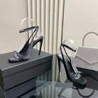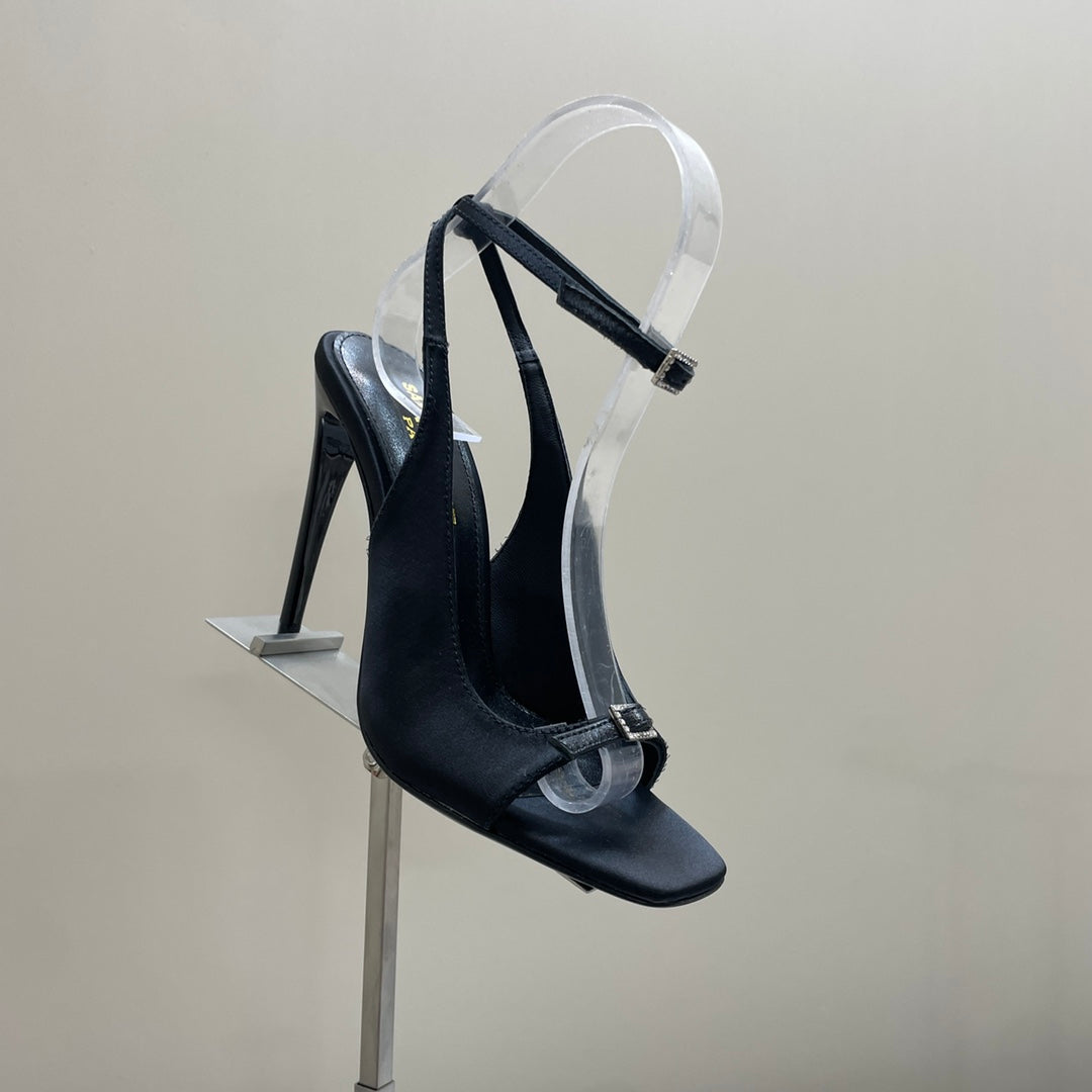 SL BUCKLE STRAP HEELED SANDAL SQUARE BLACK SILK