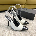 SL CAP-TOE SLINGBACKS WHITE CANVAS AND BLACK CALFSKIN