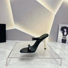SL CRYSTAL BUCKLE HIGH HEELS BLACK CALFSKIN