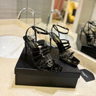 SL JERRY HEELED SANDALS BLACK POLISHED CALFSKIN