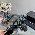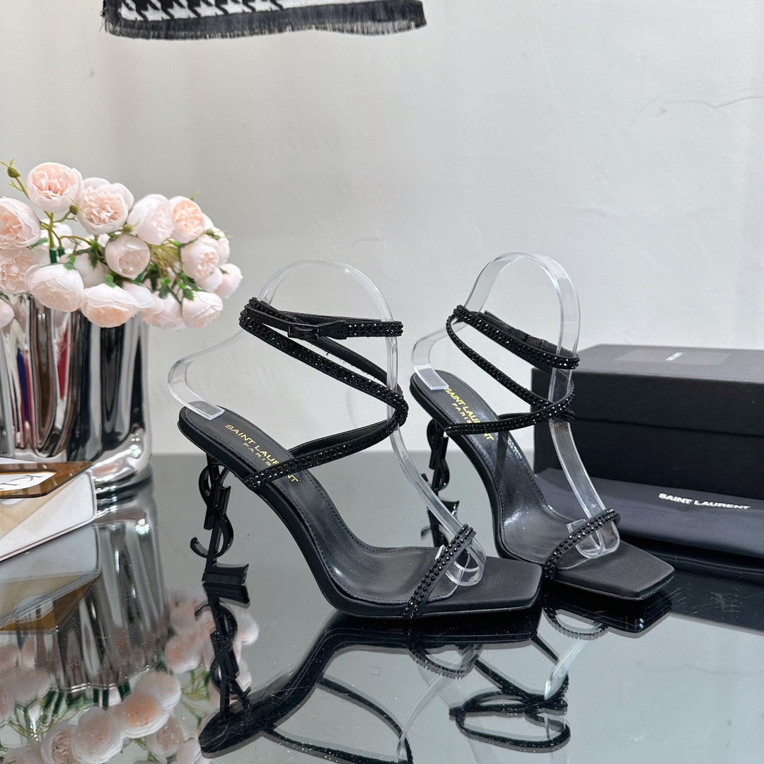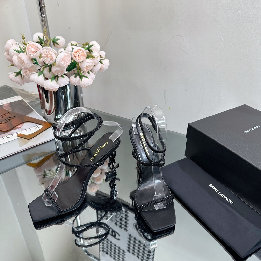 SL OPYUM CRYSTAL HEELED SANDALS BLACK SATIN