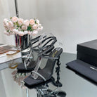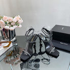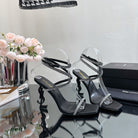 SL OPYUM WHITE CRYSTAL HEELED SANDALS BLACK SATIN