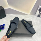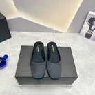 SL SQUARE TOE FLAT MULES BLACK SATIN