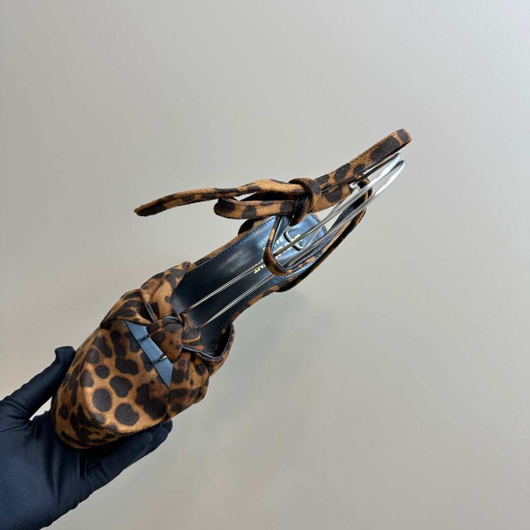 OPYUM 10 CM HIGH MULES IN LEOPARD PRINT SILK