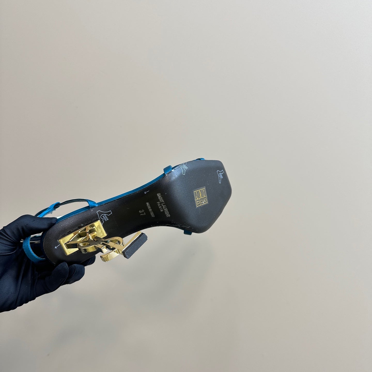 OPYUM HIGH SANDALS IN DUCK BLUEE SILK