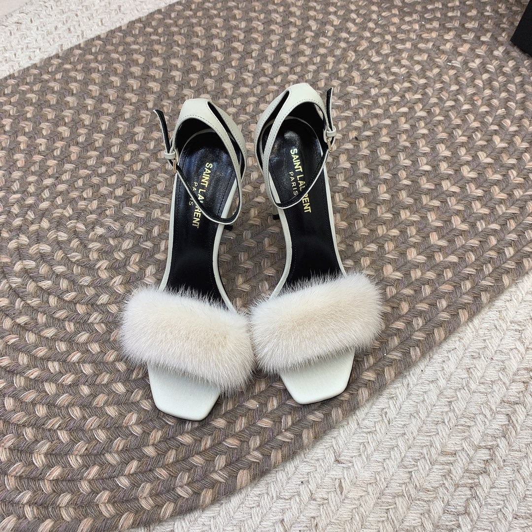 HIGH HEELS SQUARE TOE IN WHITE MINK FUR