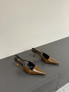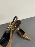 LEE SLINGBACK MID PUMPS IN BARK BROWN SHINY CALFSKIN