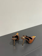 ORANGE GEM-STUDDED SLINGBACK PUMPS IN BRONZE BROWN PATENT CALFSKIN