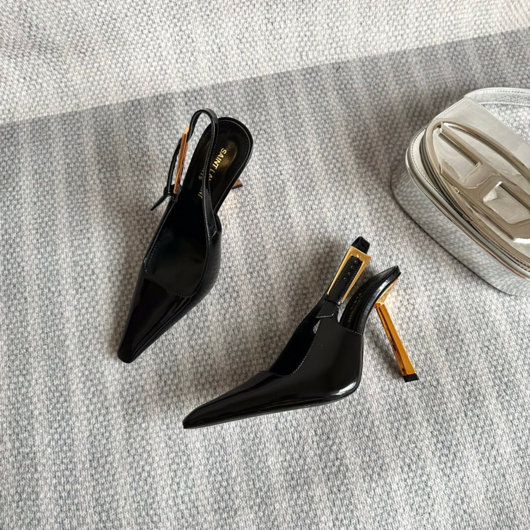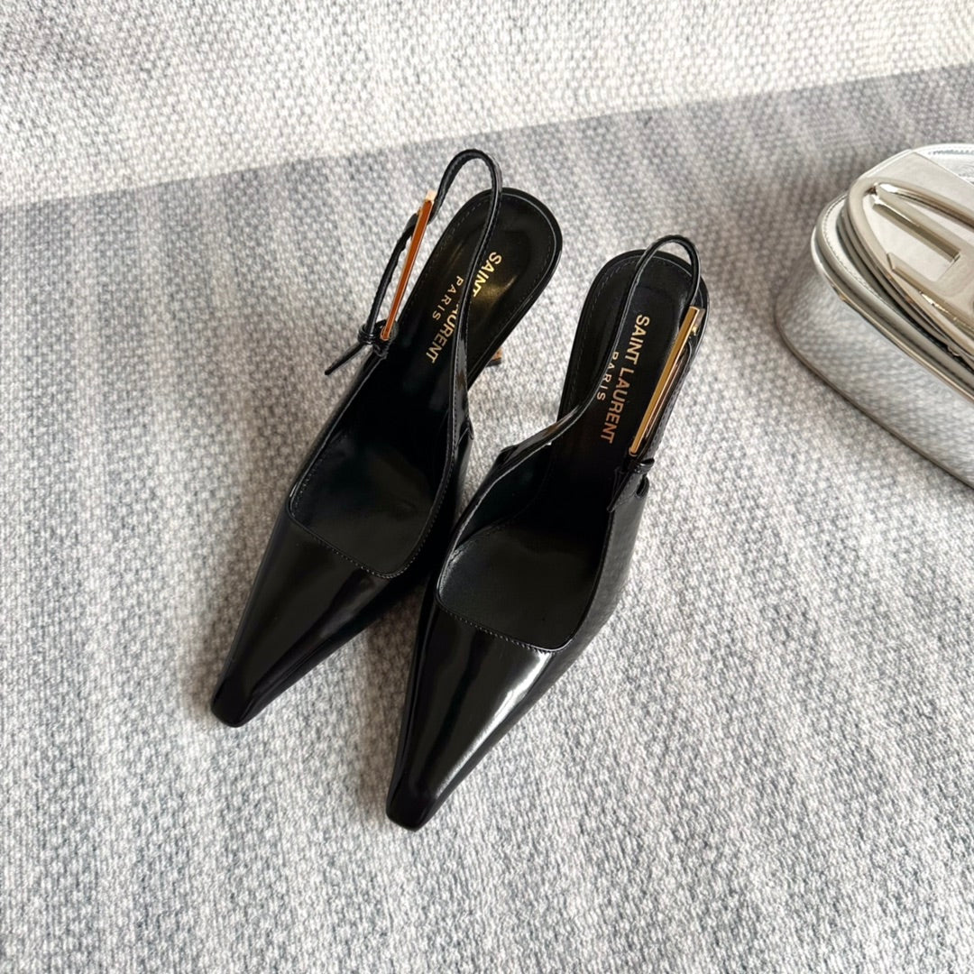 SL JEANNE SLINGBACK PUMPS BLACK POLISHED CALFSKIN