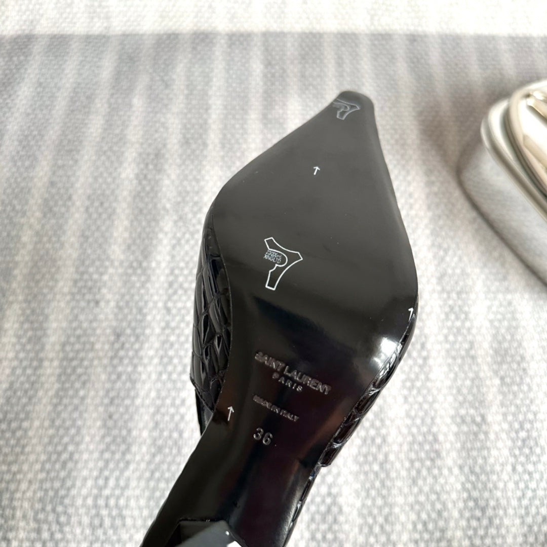 SL CHERISH CROCODILE SLINGBACK PUMP 75 BLACK CALFSKIN