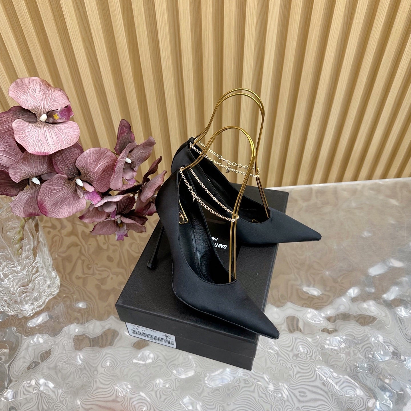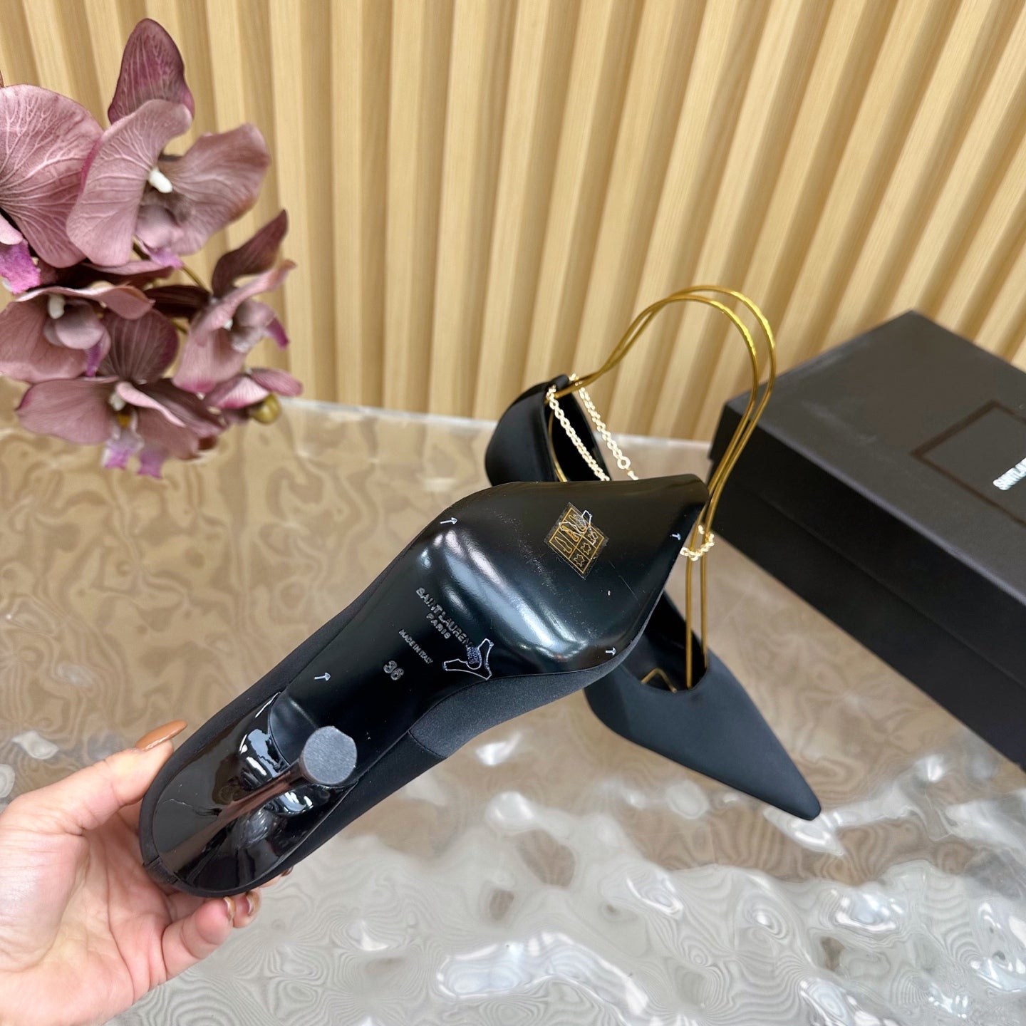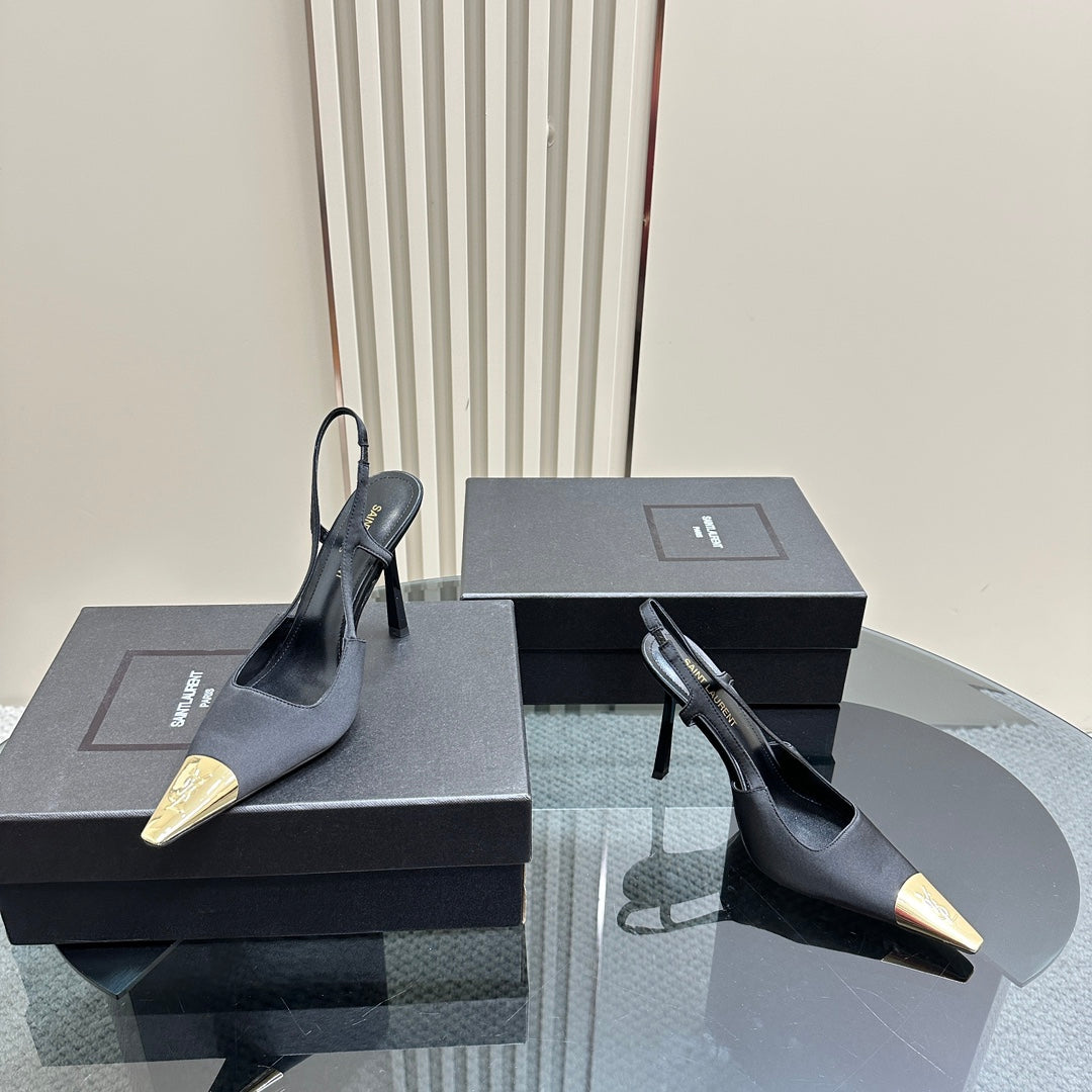 SL DUNE SLINGBACK PUMPS BLACK SATIN