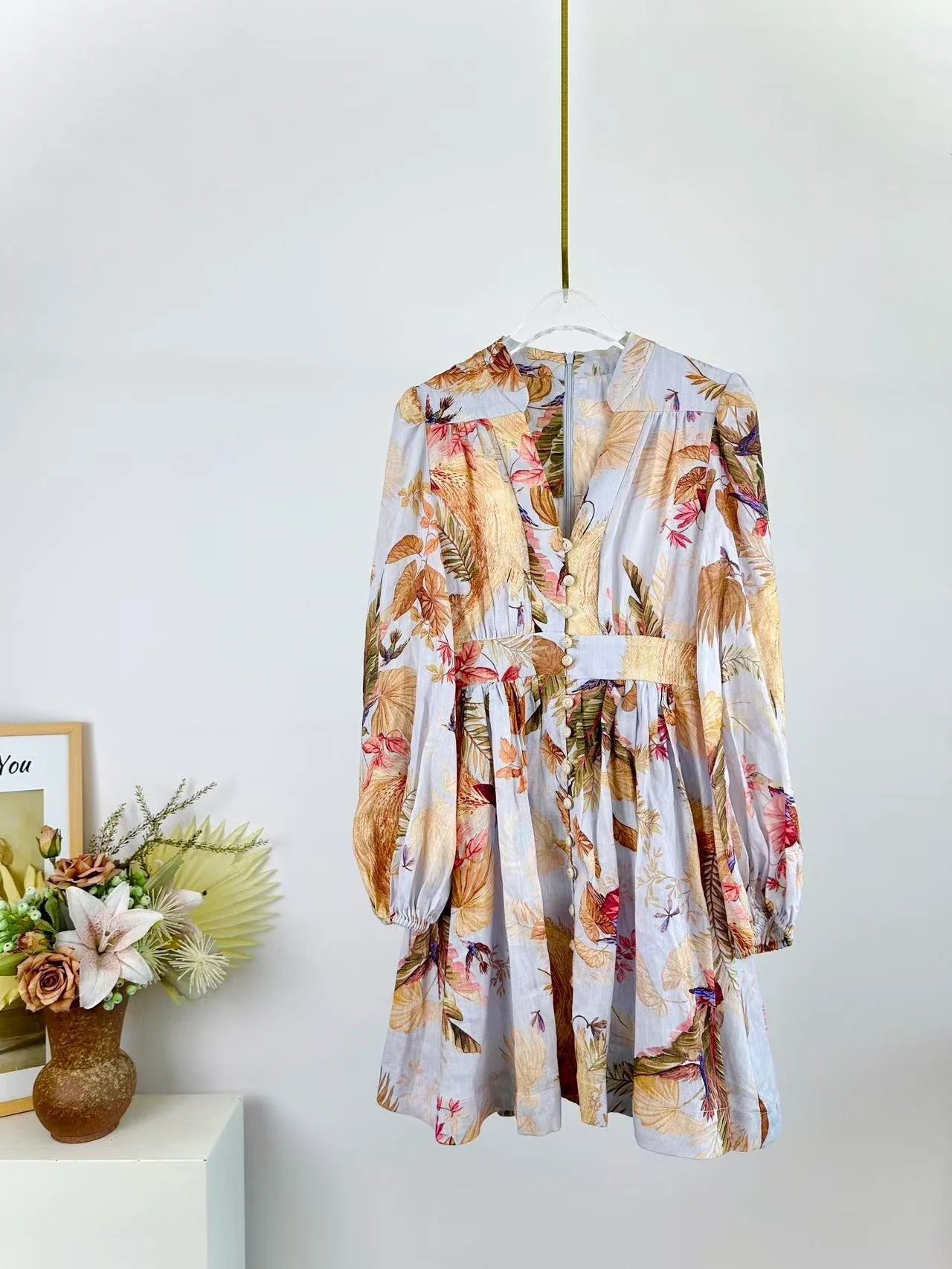 LONG-SLEEVE FLORAL PRINT DRESS