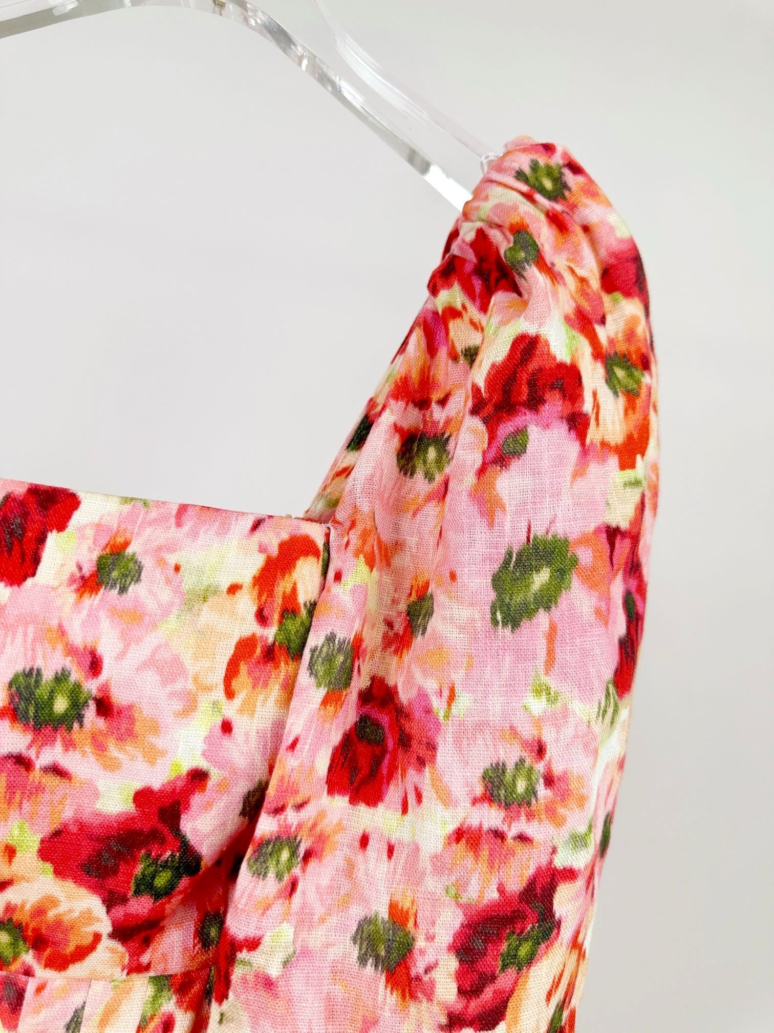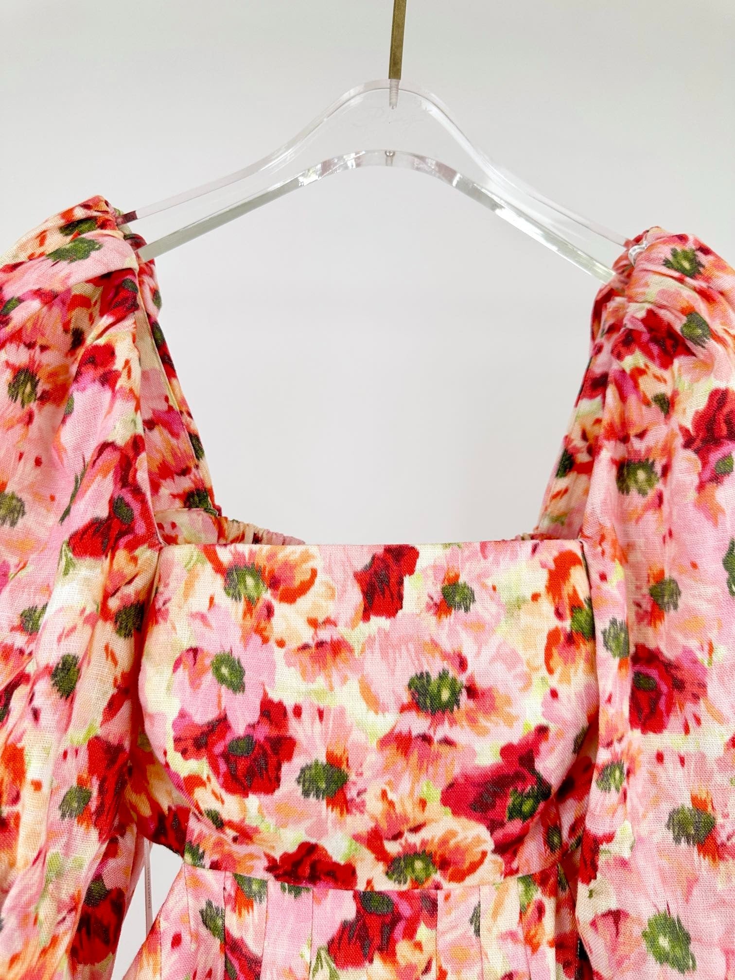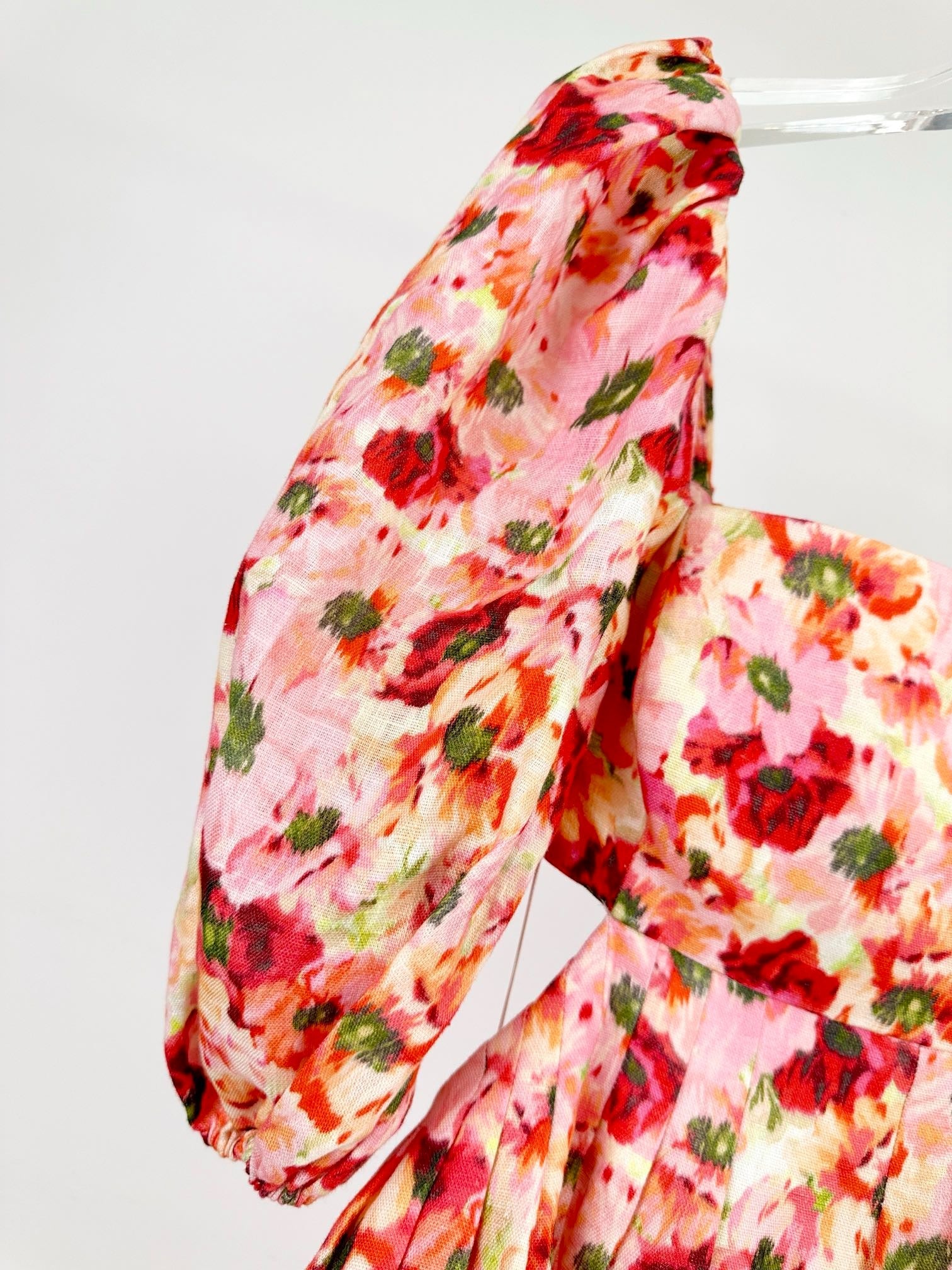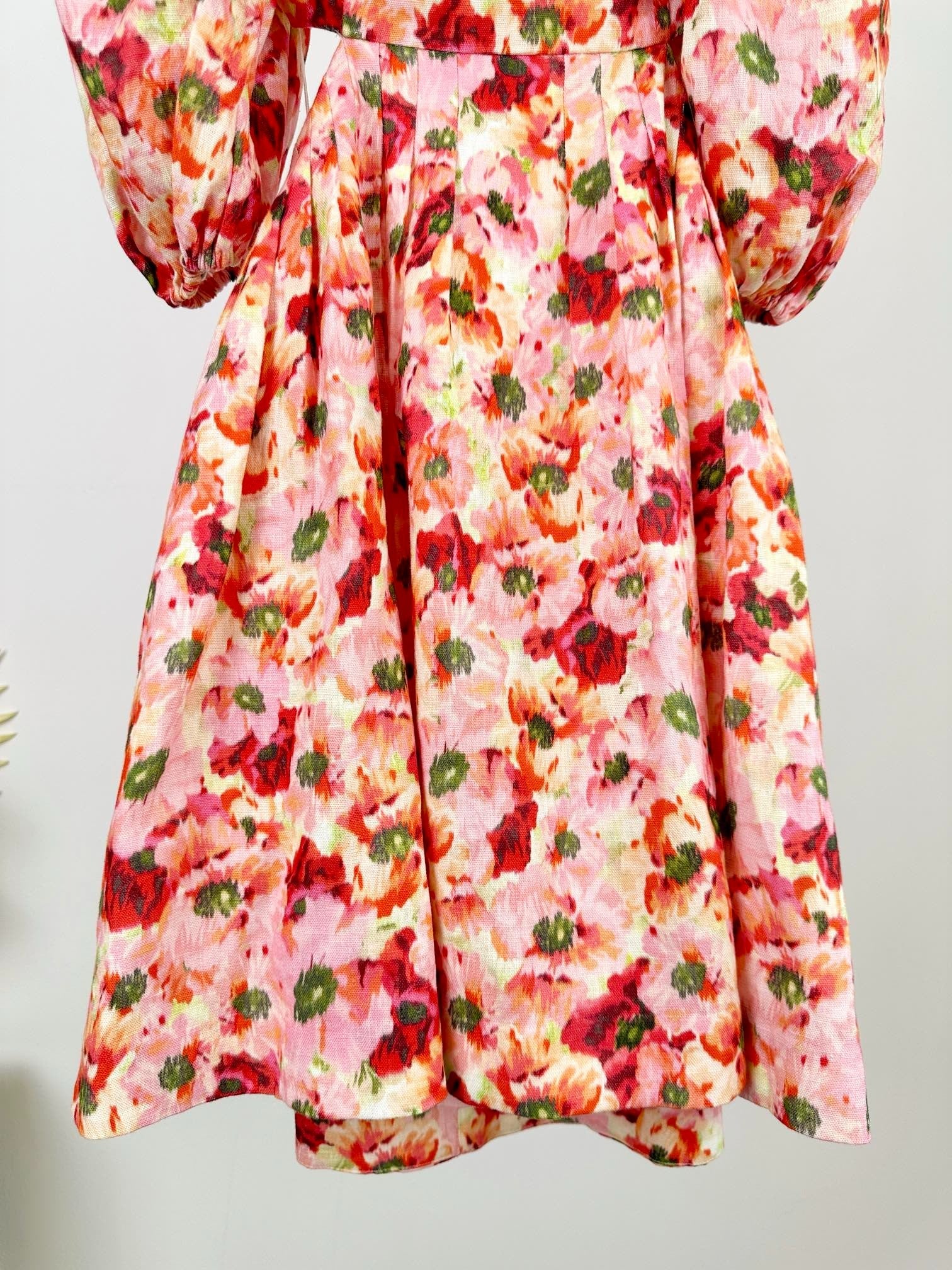 PUFF SLEEVE MINI DRESS 25S RED IN LINEN 266363