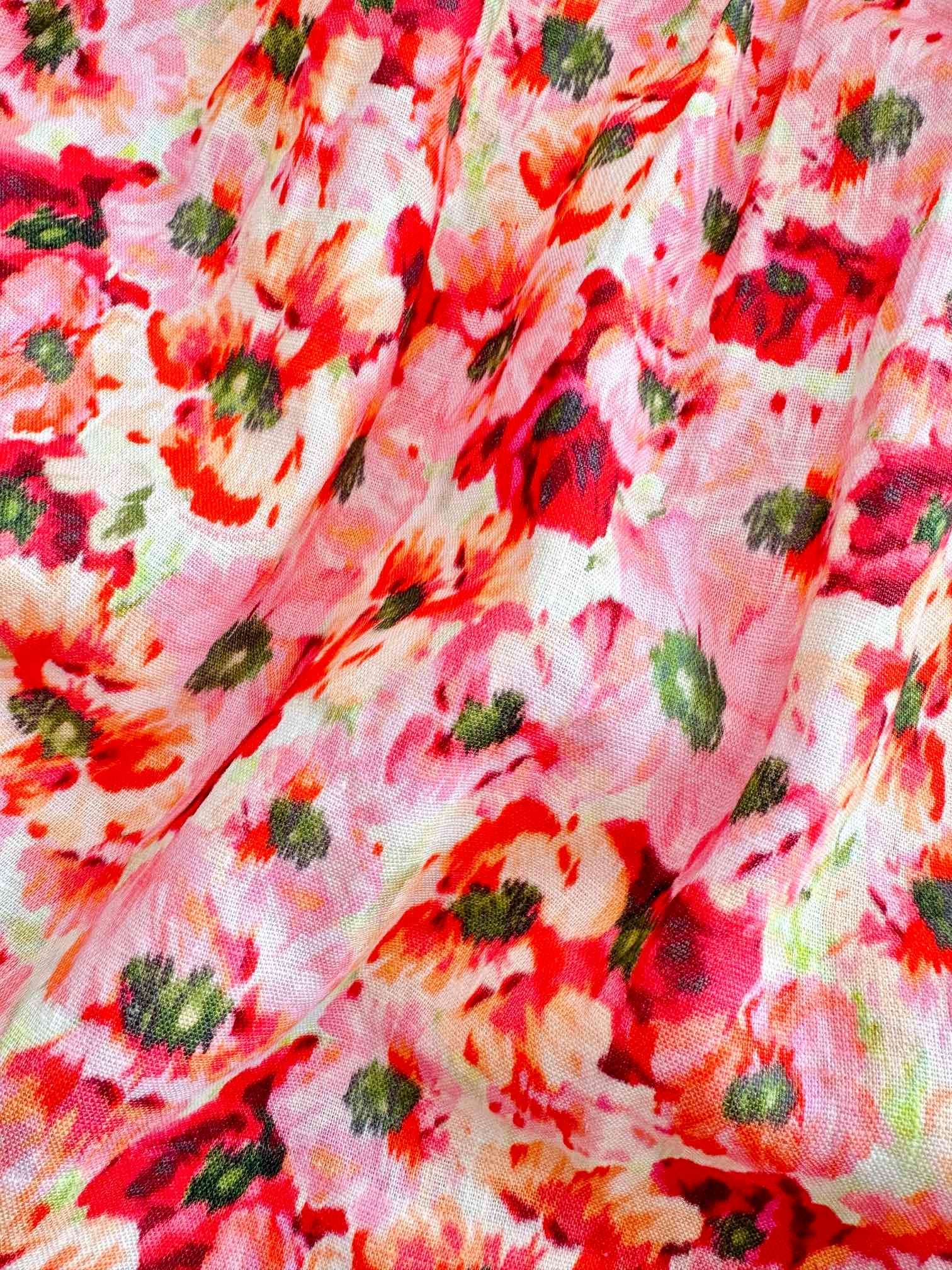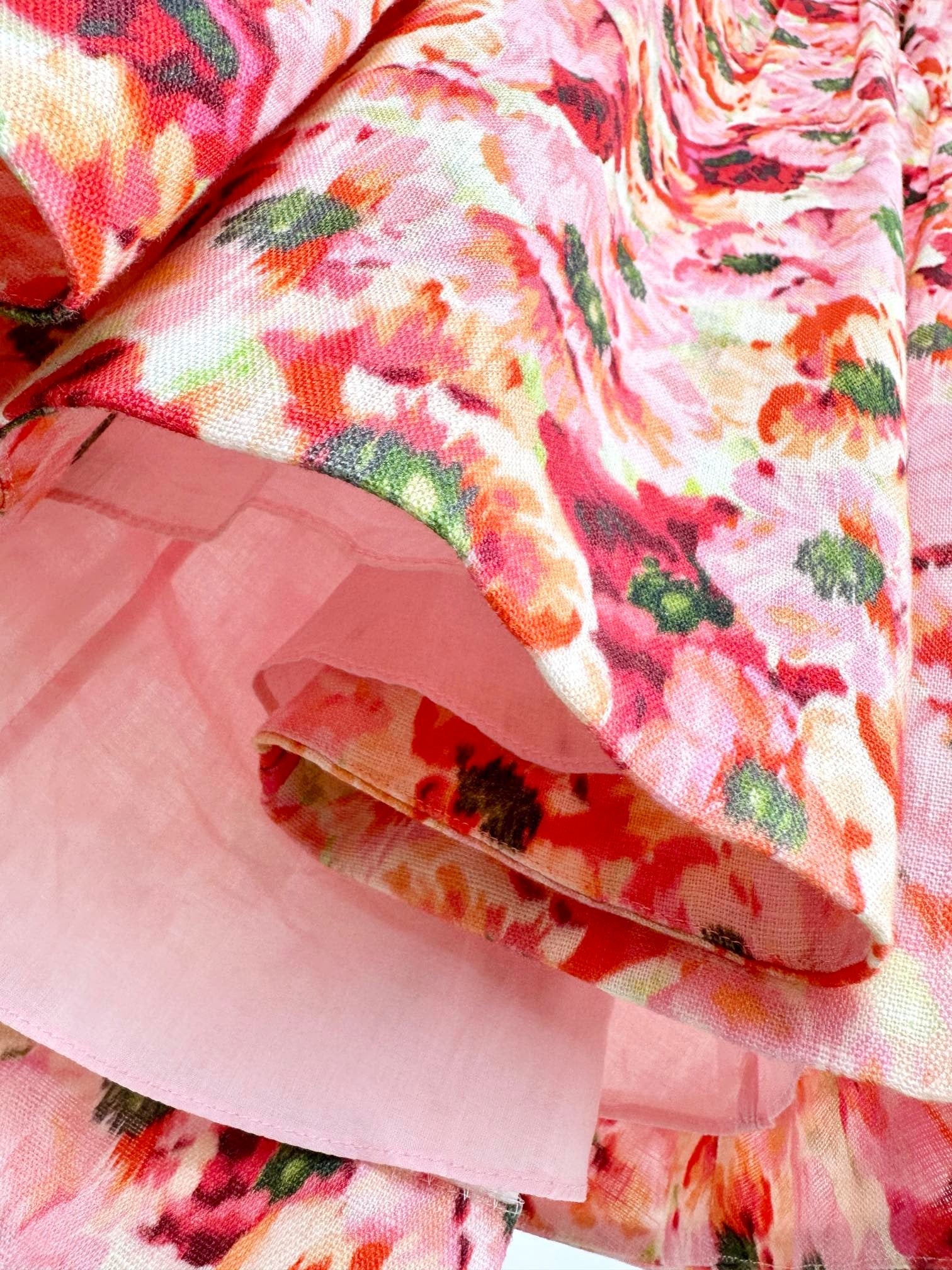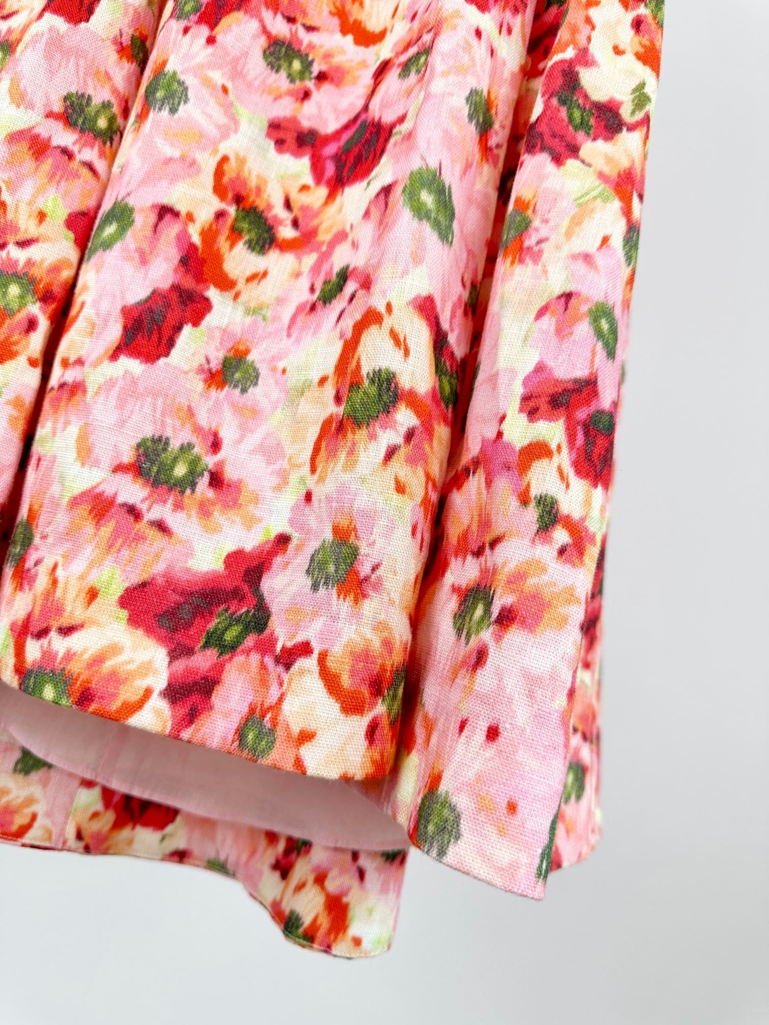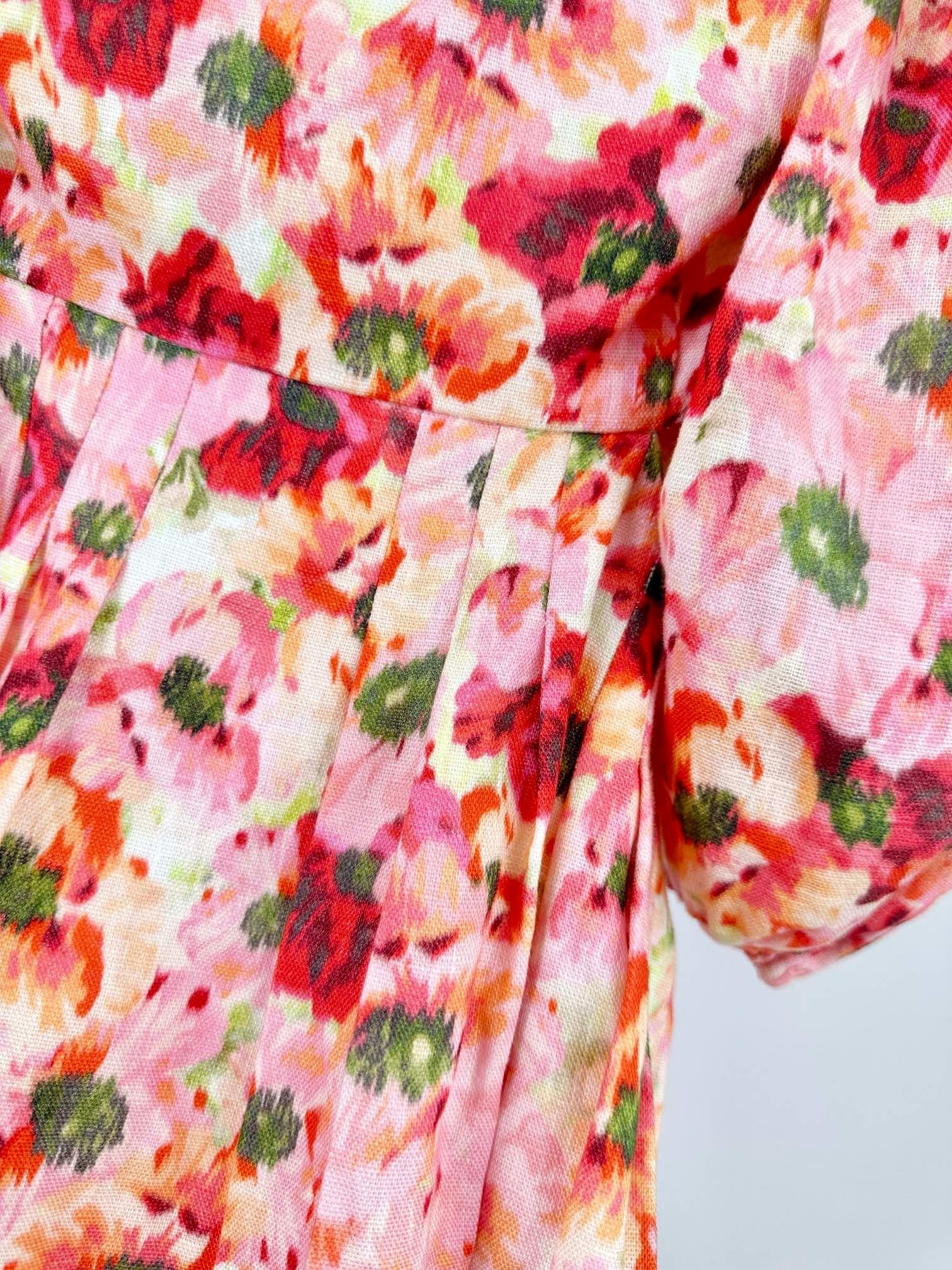 PUFF SLEEVE MINI DRESS 25S RED IN LINEN 266363
