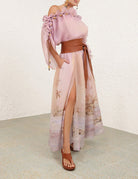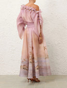 ZIMMER SILK MIDI DRESS IN PASTEL BLUE-GREEN AND LIGHT PURPLE