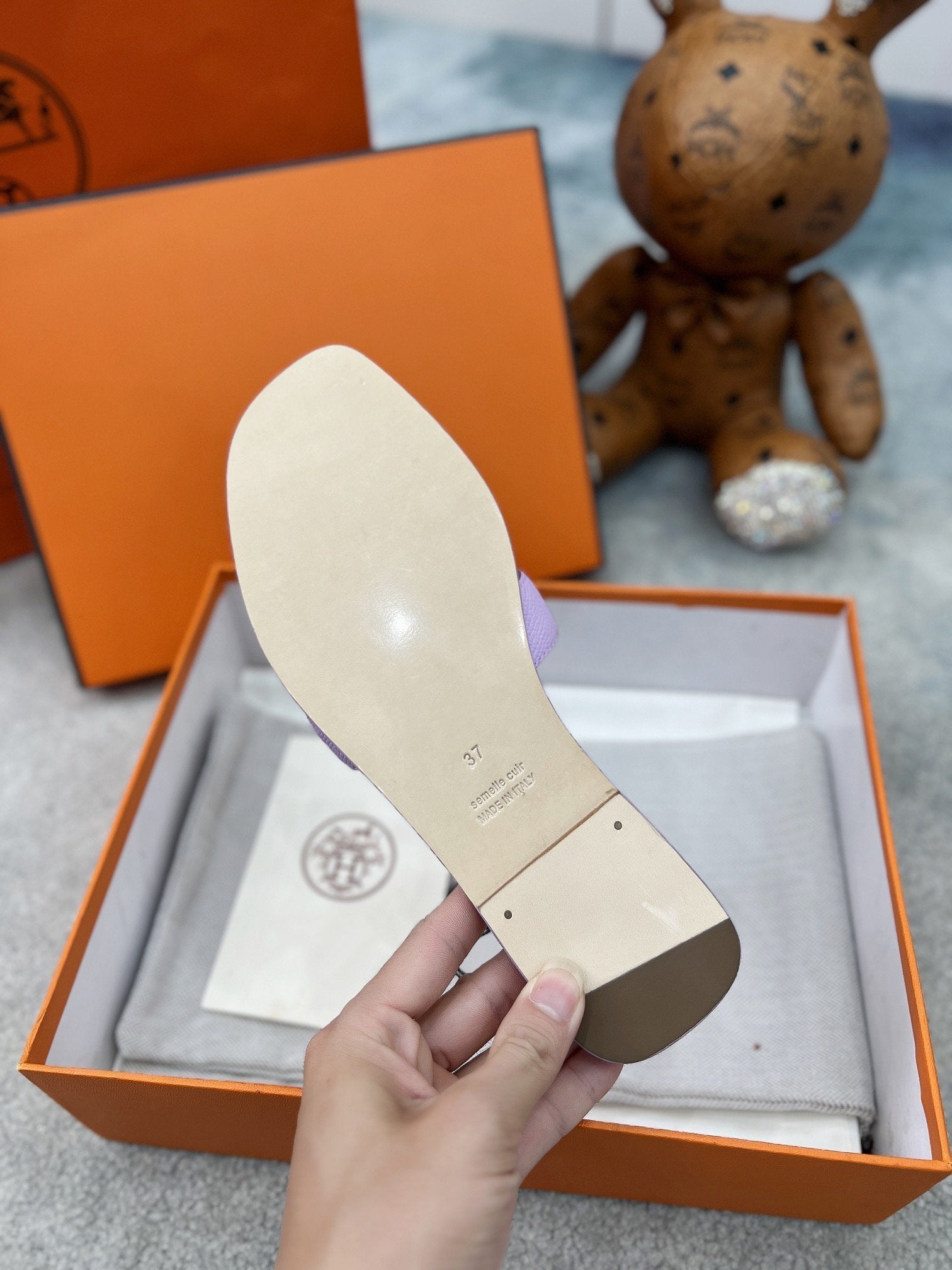 - Material: Sandal in epsom goatskin with iconic "H" cut-out.