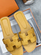 - Material: Sandal in suede goatskin with iconic "H" cut-out.
