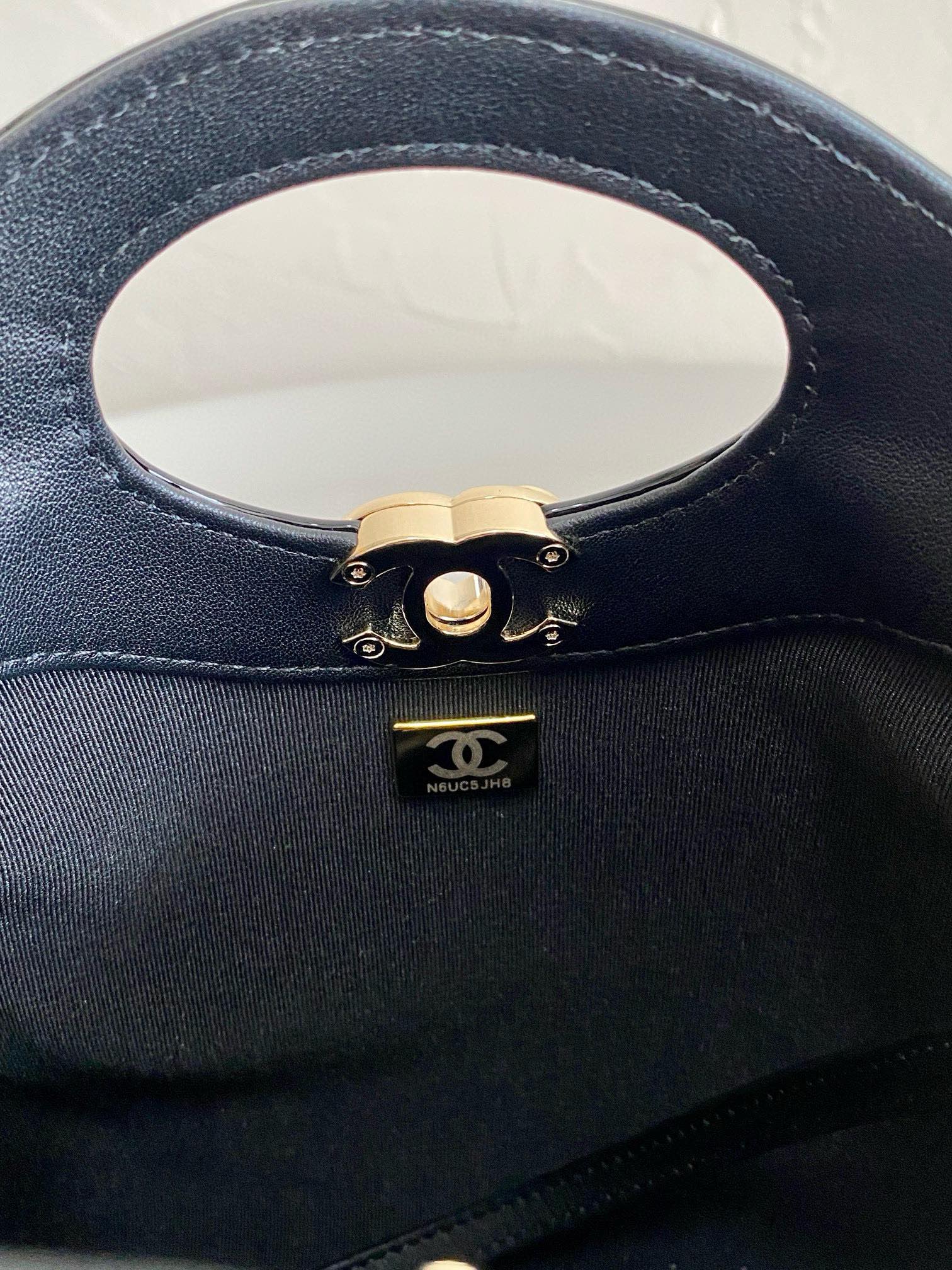 23a cc 31 mini shopping bag 23cm yellow black patent calfskin