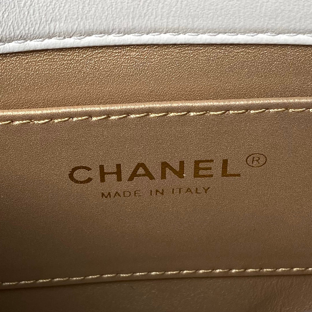 24a mini flap bag 19cm white lambskin pearl and gold hardware