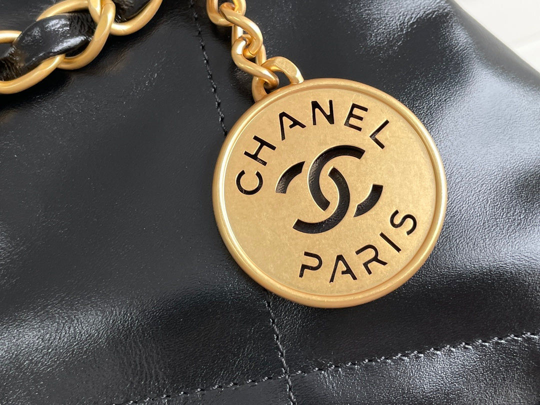 24B CC 22 Hobo Bag 35cm Black Lambskin Gold Hardware