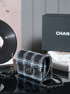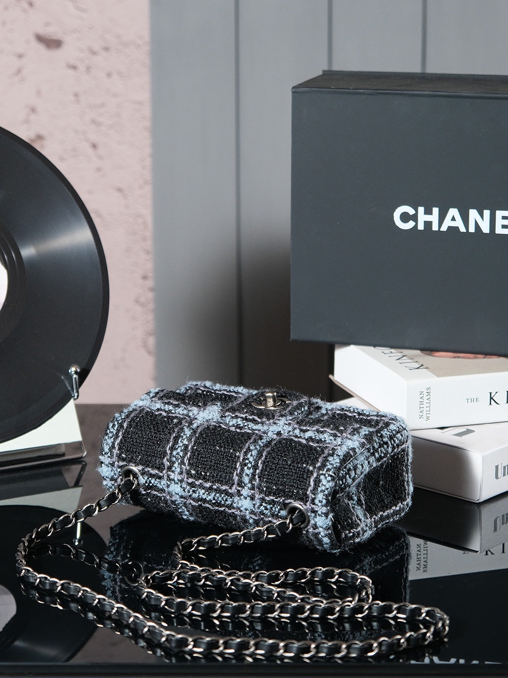 24K Flap Bag 20cm Blue Black Stripe Tweed