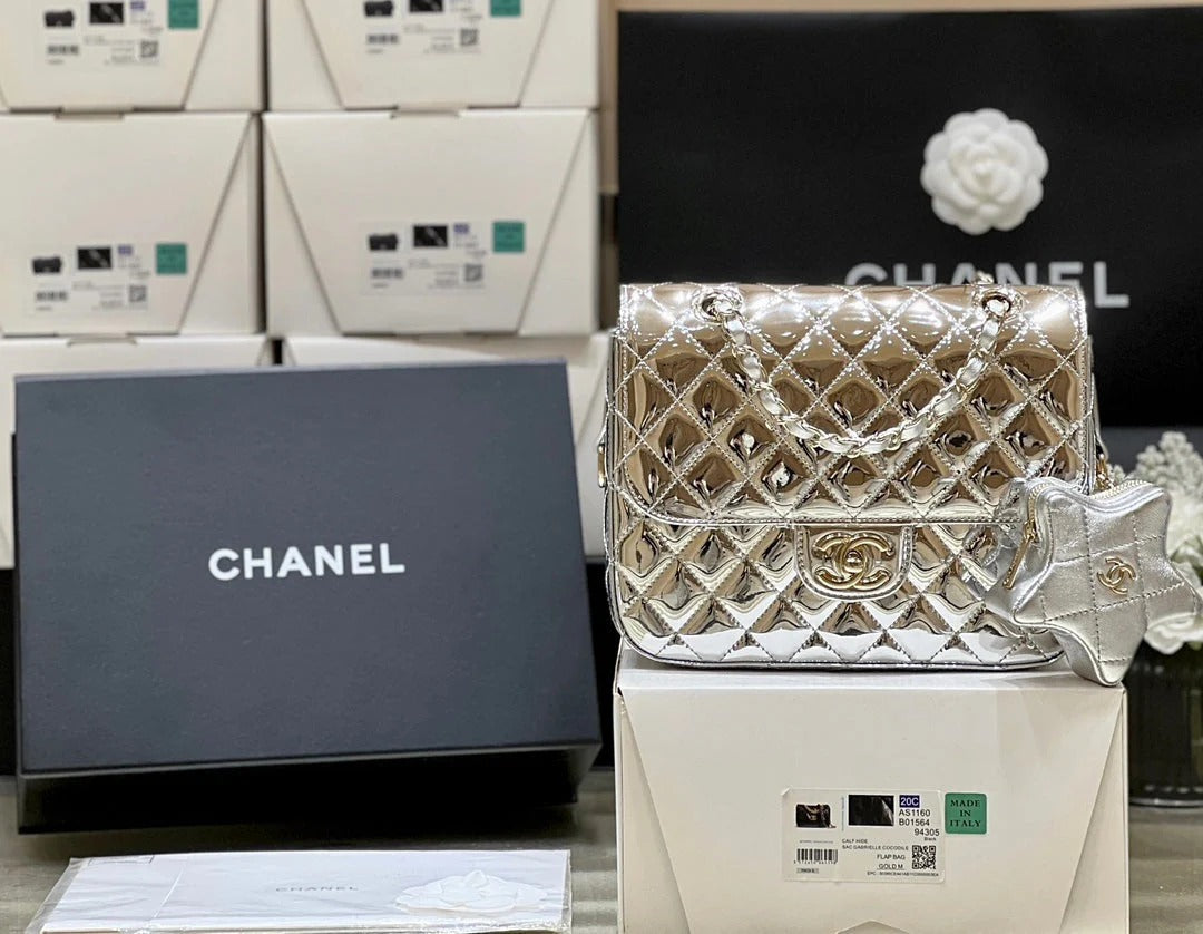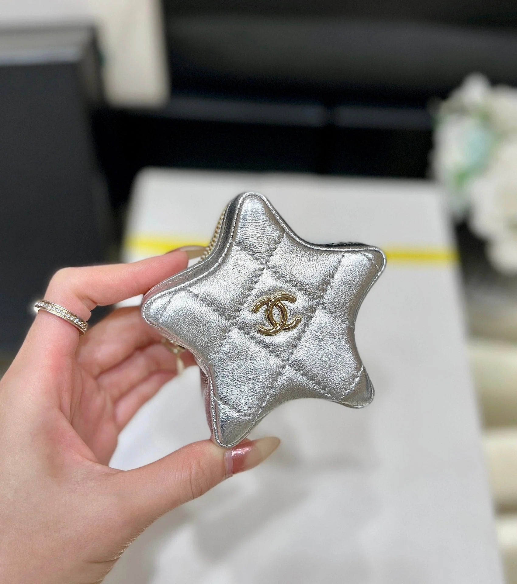 25S CHANEL STAR SILVER 23 IN METALLIC SILVER CALFSKIN