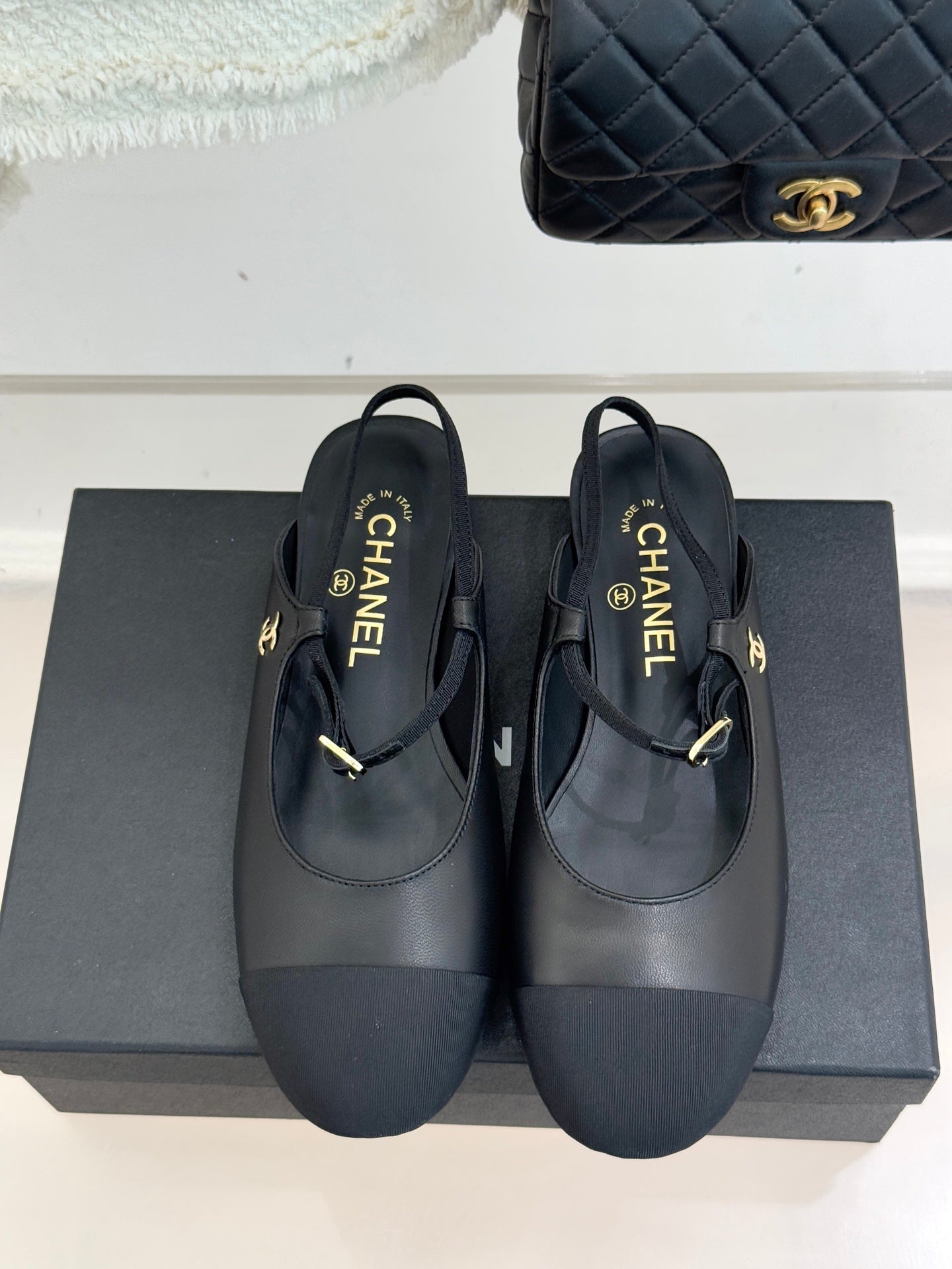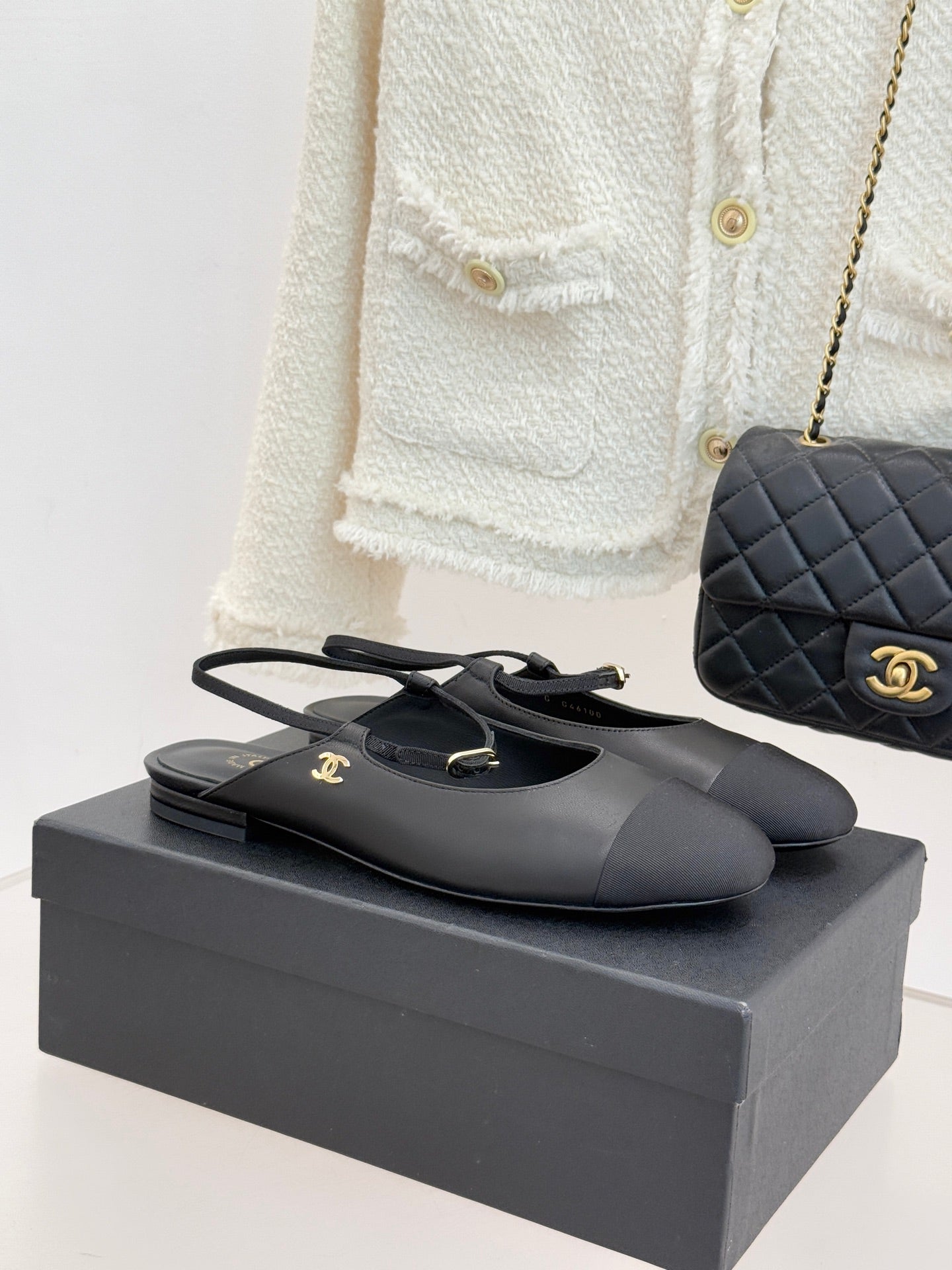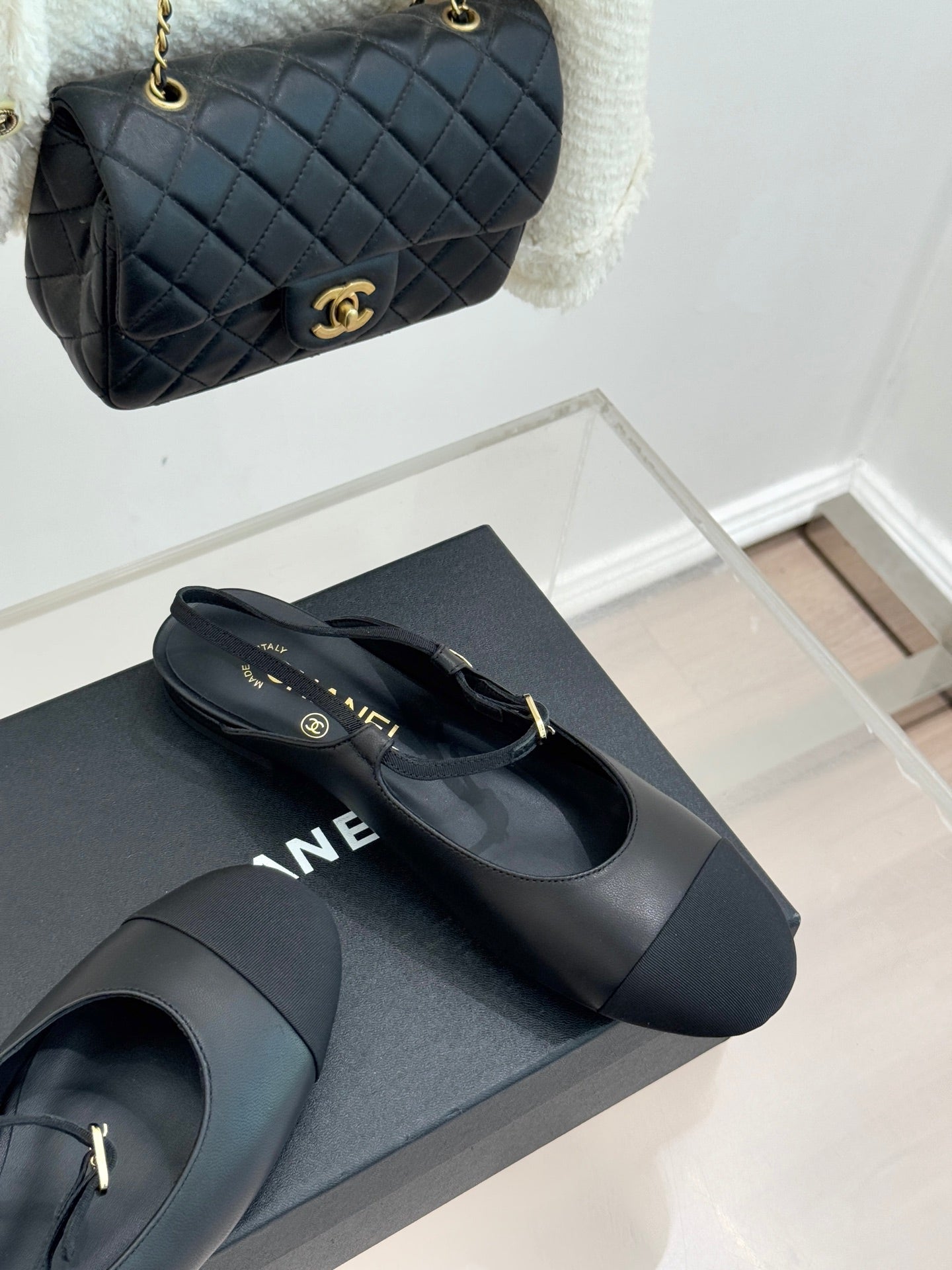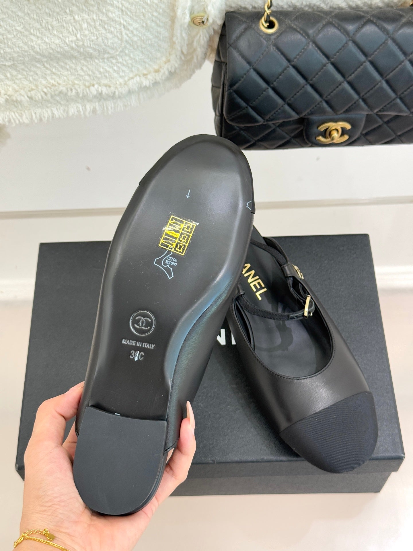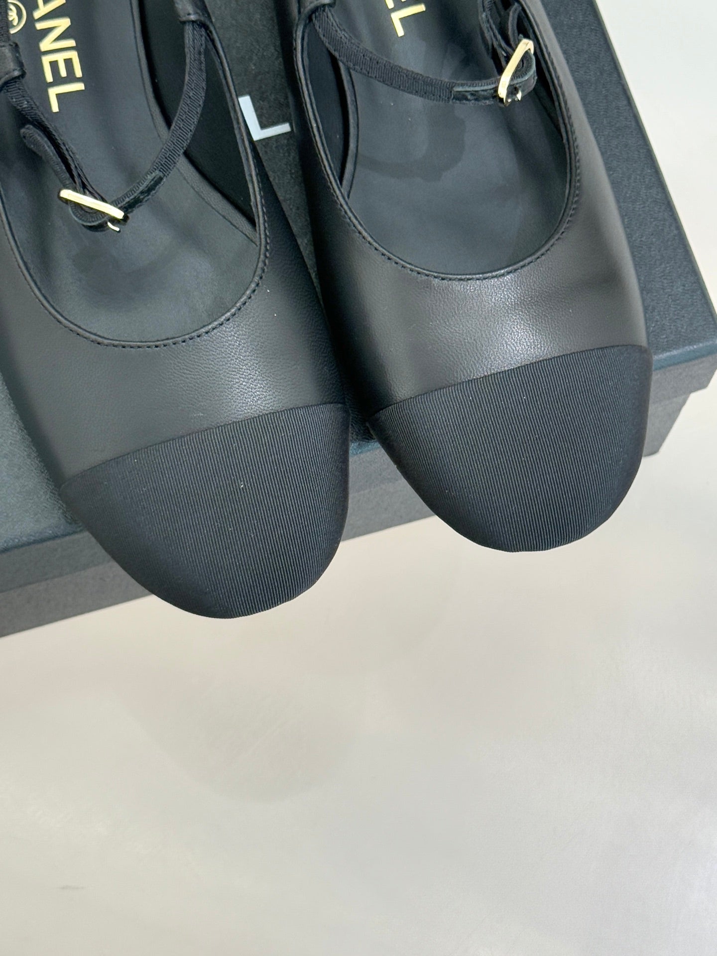 26C Two-tone Double C Flat Shoes Black Sheeskin 557688