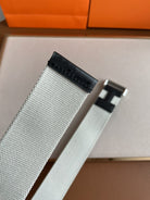 4.0CM GREY TEXTILE BLACK LEATHER H BELT